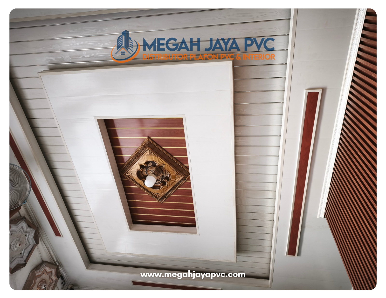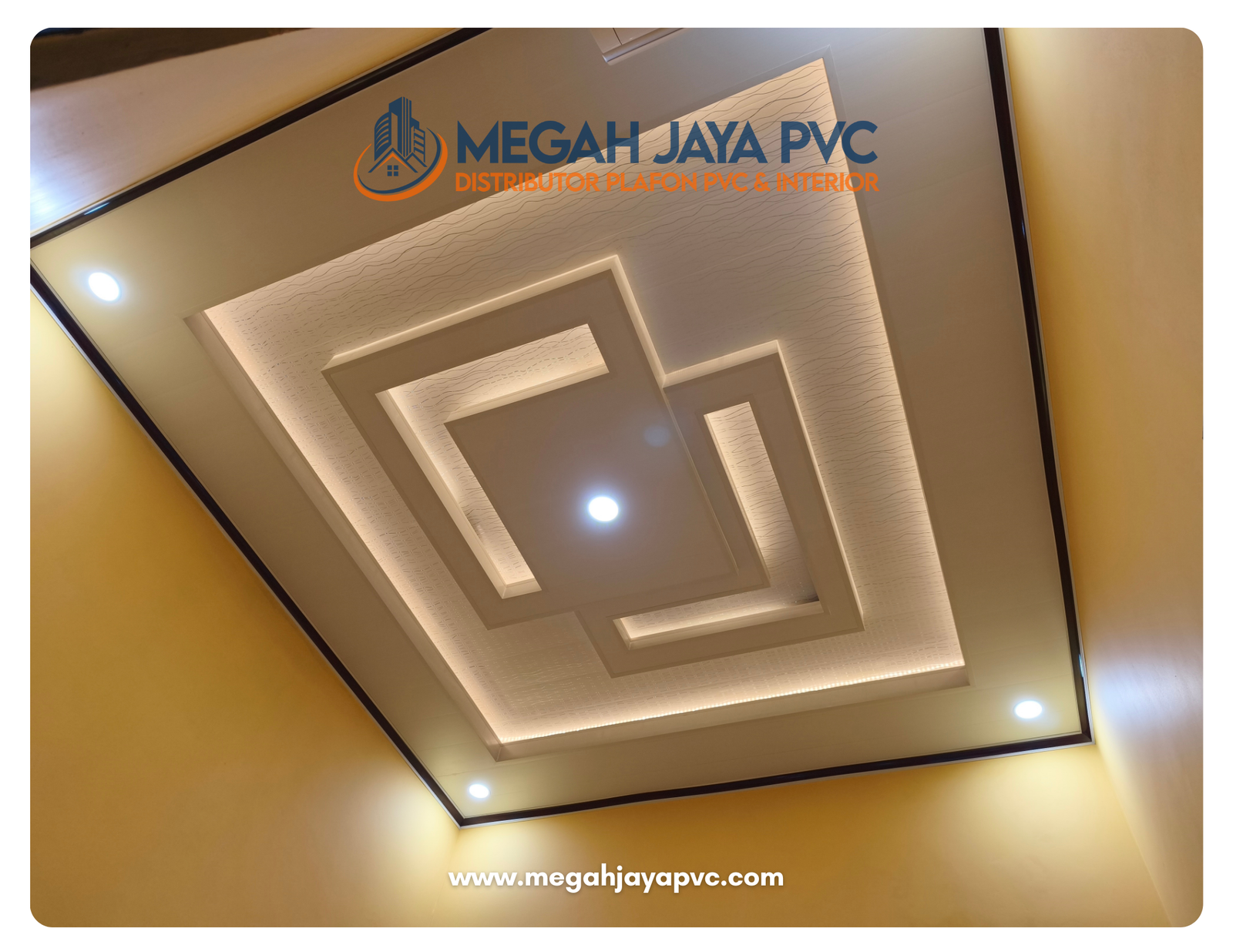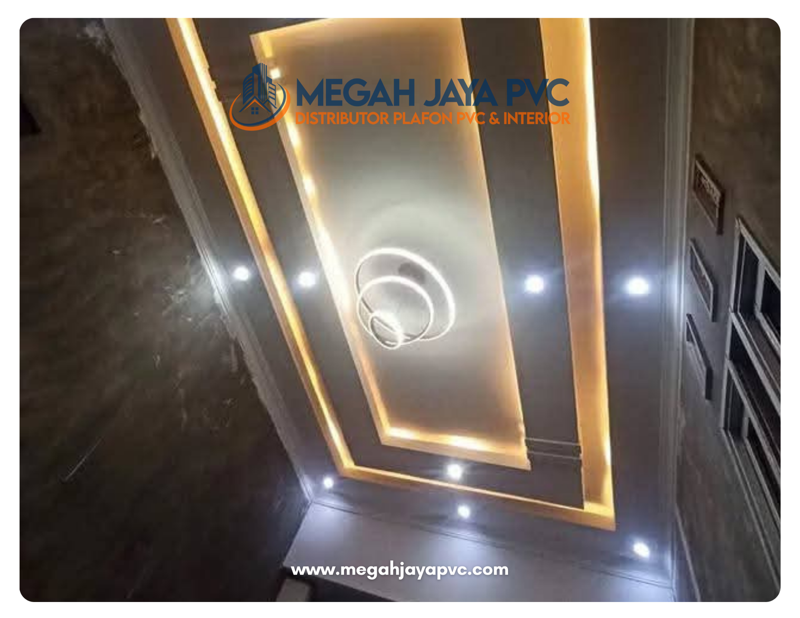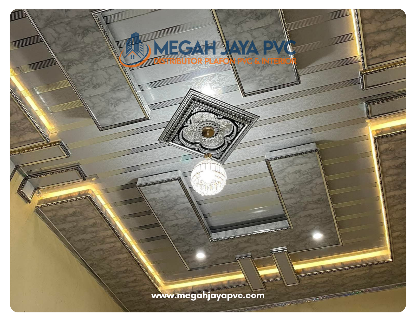DISTRIBUTORPLAFON PVC& INTERIORPlafon Plihan Orang Pintar More Info Tentang KamiMEGAH JAYA PVCDistributor plafon PVC dan solusi interior terpercaya. Menyediakan produk berkualitas, pemasangan profesional, dan layanan untuk rumah, kantor, hingga proyek komersial dengan hasil rapi, elegan, dan tahan lama. Produk Katalog All PVC Gloss PVC Doff Pick Up Toko Melayanai Pengirman sejabodetabek Bergaransi Produk berkualitas & Bergaransi Online Support Layanan Kosultasi Gratis System Pembayaran Pembayaran Via Transfer atau Cash Gallery Plafon PVCPlafon PVC premium dengan tingkat kepdatan dan ketebalan 8mm